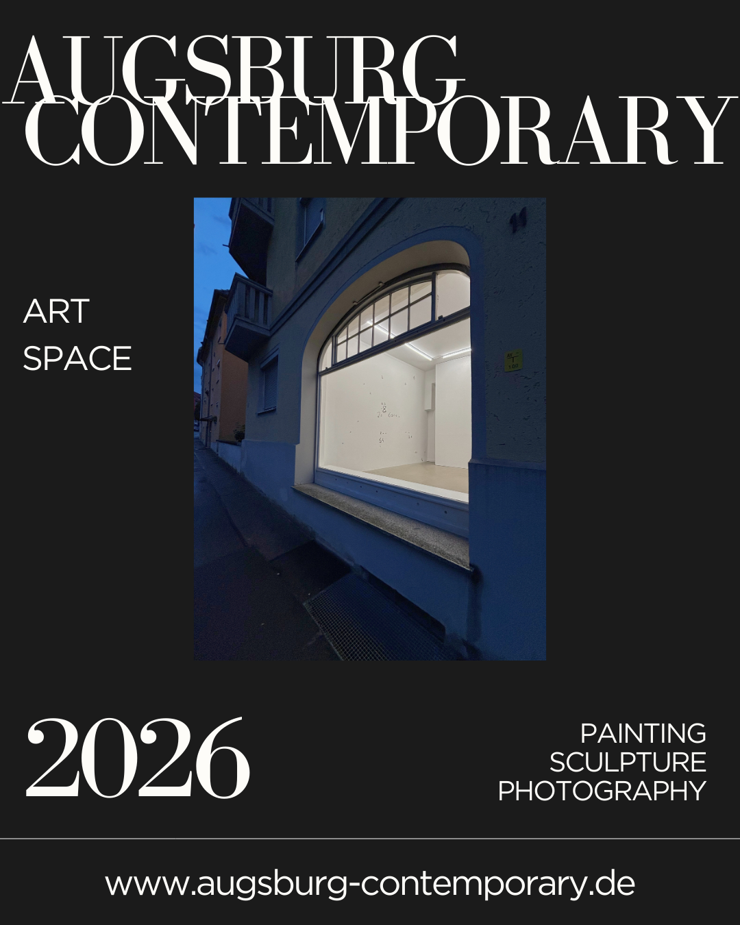 augsburg contemporary is a project space for innovative positions in contemporary art. Owner Andreas Stucken has been showing site-specific, conceptual works, painting, photography, sculpture since 2019 and presents selected artists at art fairs such as POSITIONS Berlin, paper positions and art karlsruhe. Past projects include the exhibition series "Domestic Space", which was funded by the German Government as part of NEUSTART KULTUR, and the network project "Art X Augsburg".