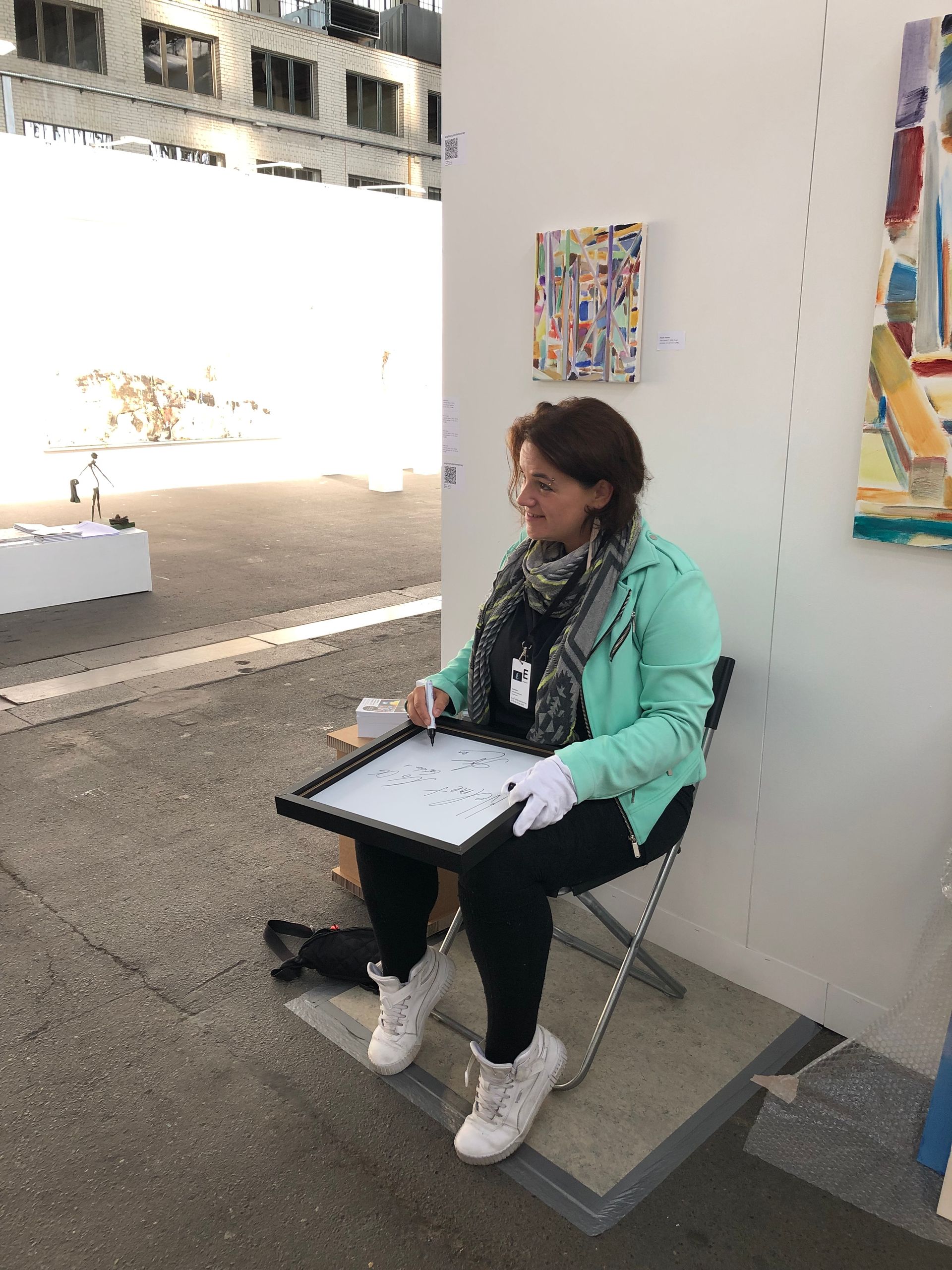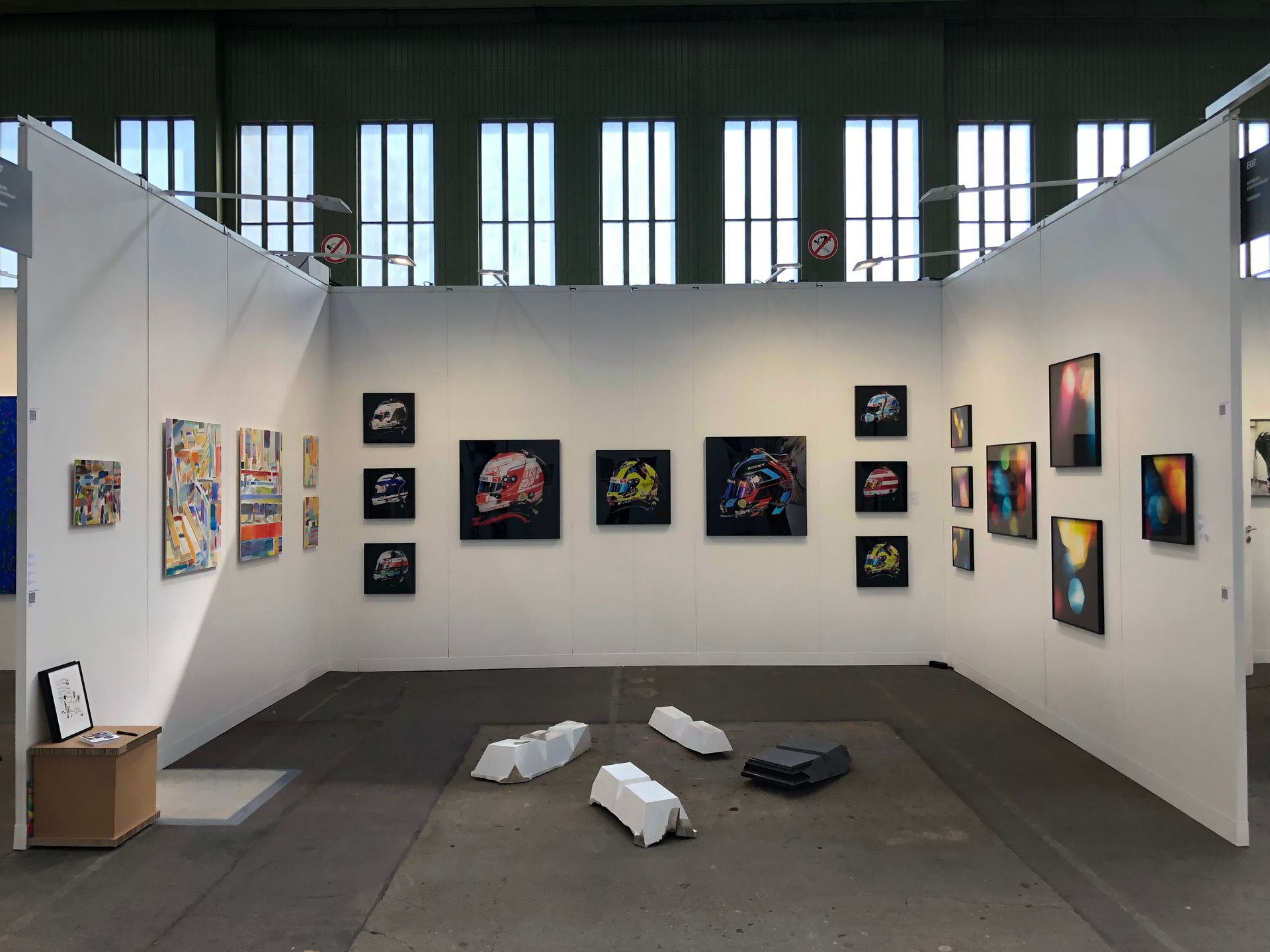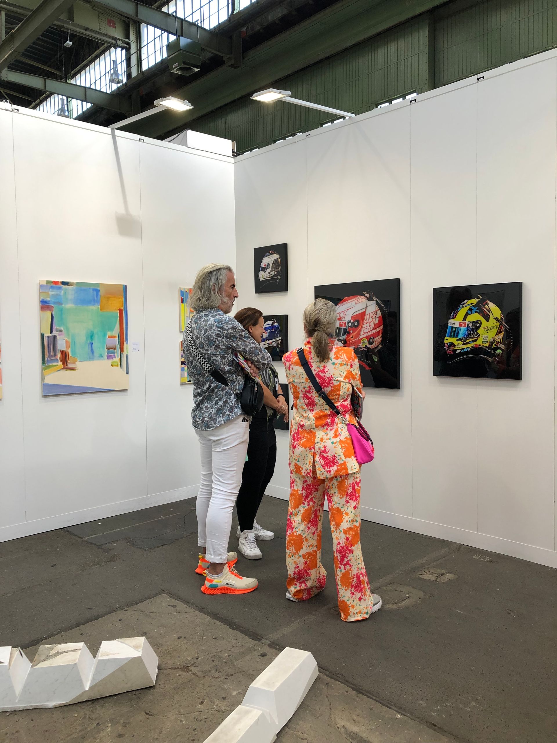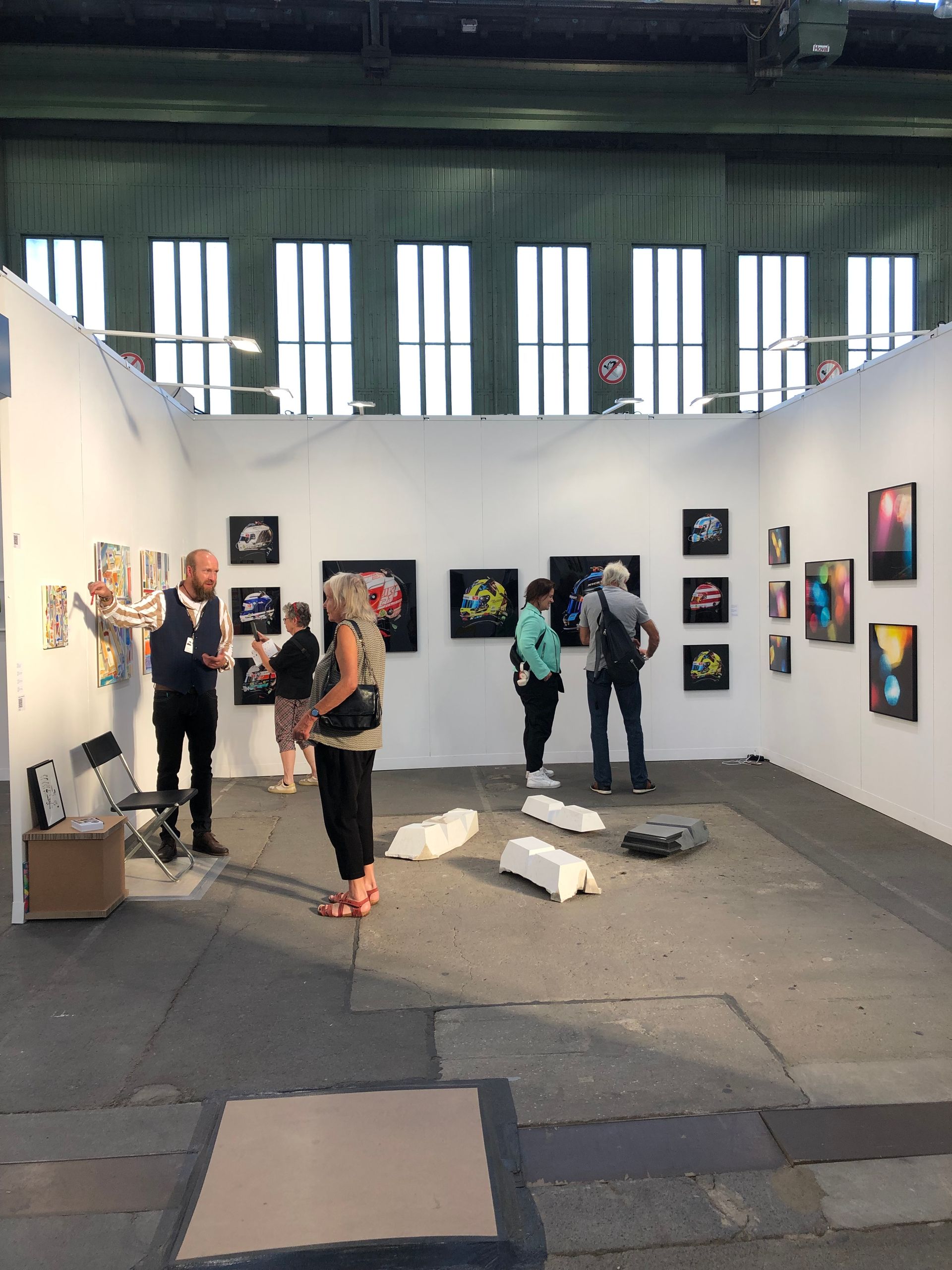 Review: We were showing new works by Karen Irmer, Elvira Lantenhammer, Kirk Sora and Angela Stauber at the POSITIONS Berlin Art Fair from September 12th to 15th, 2024. The POSITIONS Berlin Art Fair took place in the spacious hangars 6 and 7 of Berlin-Tempelhof Airport. The hangars with their 16-meter-high ceilings and light-flooded halls, together with the backdrop of the former airfield, offer a unique and relaxed atmosphere on over 12,000 square meters. This spacious area enables a diverse and high-quality supporting program with special exhibitions, award ceremonies, talks and many other highlights.
