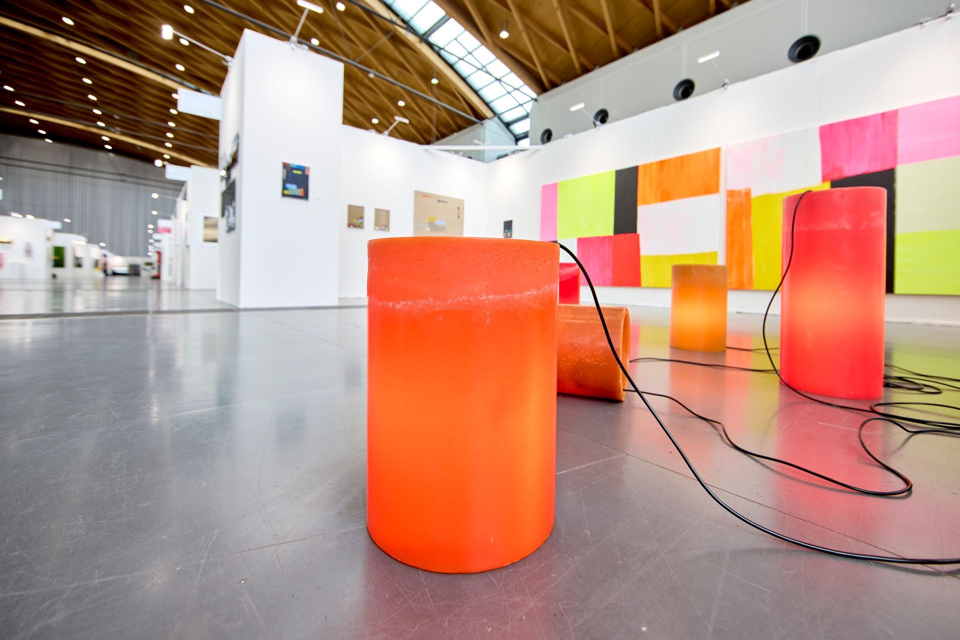 Jürgen Paas greift formal Elemente der Minimal Art auf – er schafft Kreise, Rechtecke, Quadrate, Kuben und übersetzt sie in ein offenes Malereisystem, das Einzelaspekte wie Farbe, Form und Raum befragt. Hierbei verbindet er Systematik und Ordnung mit Zufall und Regellosigkeit, die sich in einer äußerst variantenreichen und sinnlichen Materialmalerei äußert. Auf die Wand gemalte und montierte verschiedenfarbige Figurationen stehen im Dialog mit den darauf oder daneben platzierten Archivsystemen aus Halterungen, Farbtafeln und Farbbändern. Die regelmäßigen geometrischen Formen von Kreis, Rechteck und Quadrat geben eine mathematische Klarheit vor, in ihrem Zusammenspiel aber suggerieren sie einen rhythmischen Raumklang, der im Kontext synästhetischer Wahrnehmung ein polyphones Gesamtkunstwerk zur Anschauung bringt.
